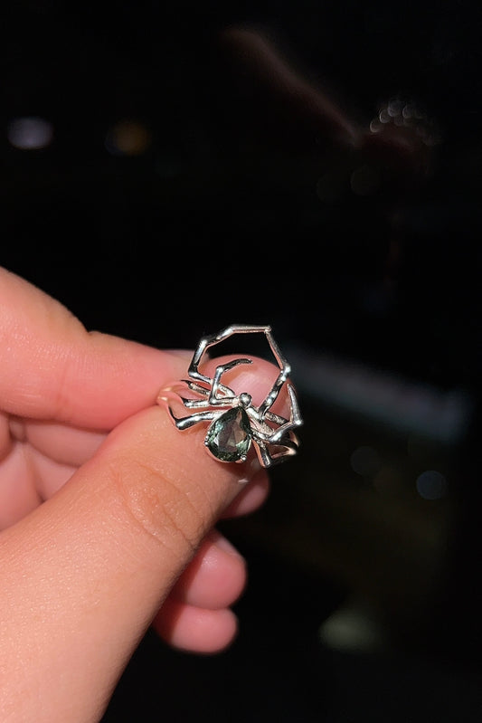 Extra High Quality Pear Cut Green Tourmaline Spider Ring