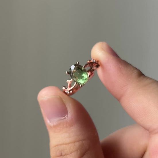 Green Fluorite Ring Rose Gold Plated